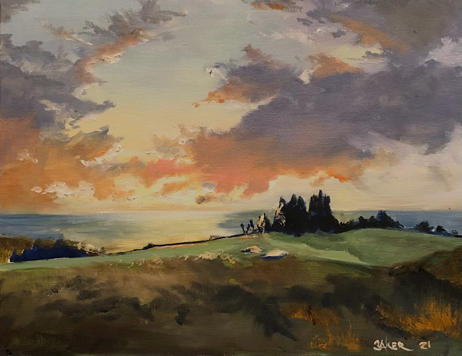 Sunset at Arcadia Bluffs - 12 x 9 oil on Canvas Board $ 125.00