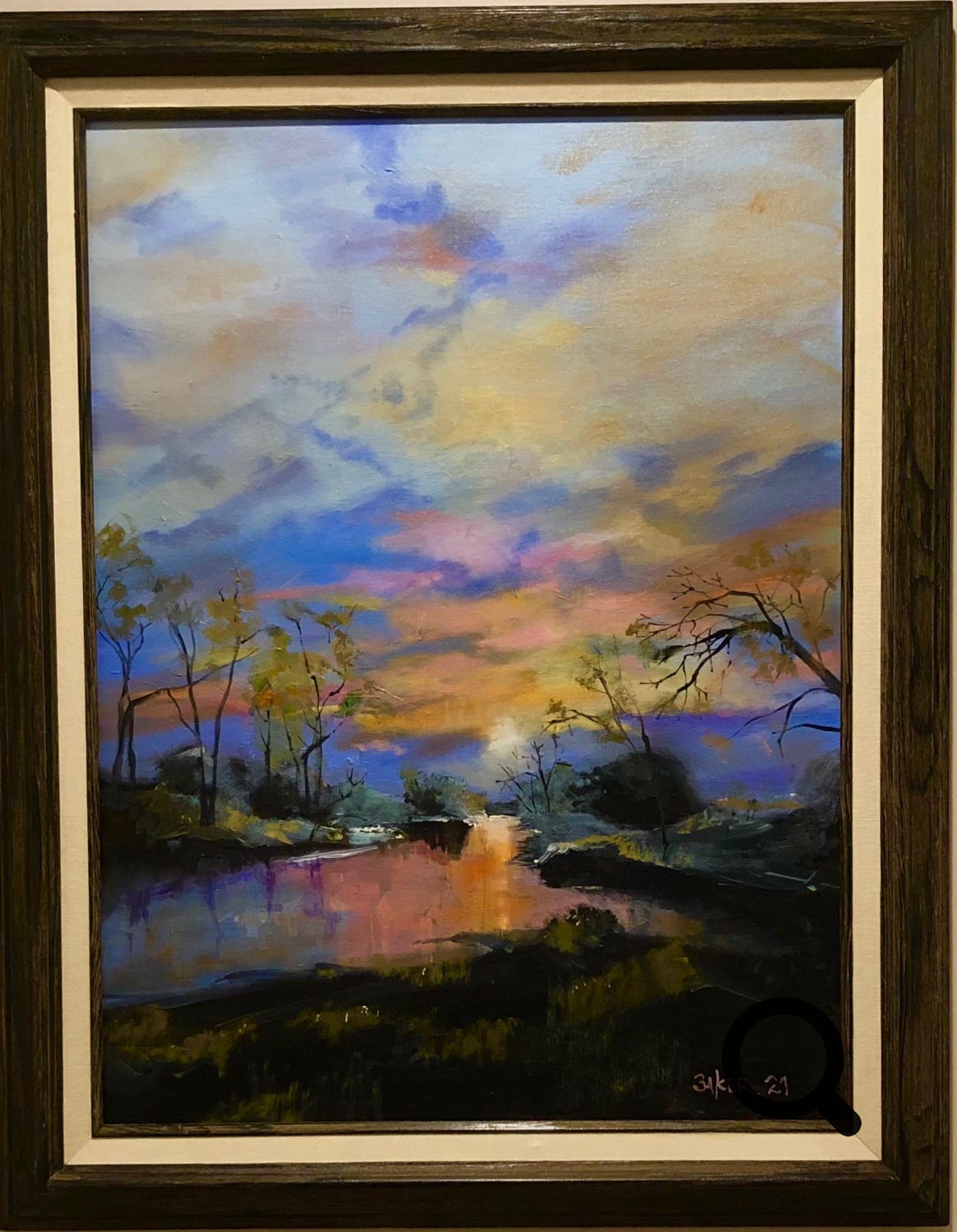 River sunset at Independence Grove FP - 16 x 20 oil on canvas framed - SOLD