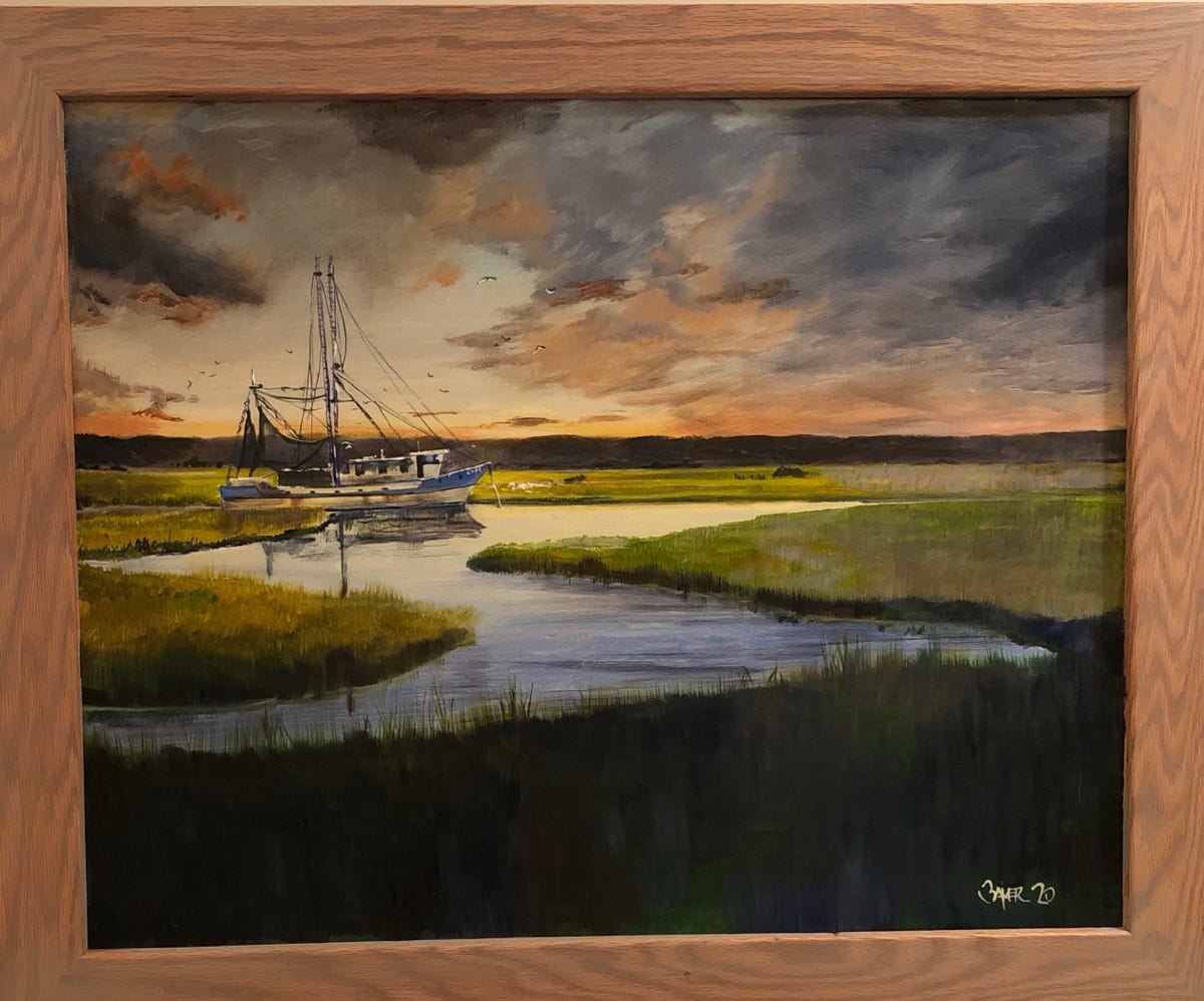 SC Shrimp boat 24 x 30 oil on canvas board - framed - SOLD