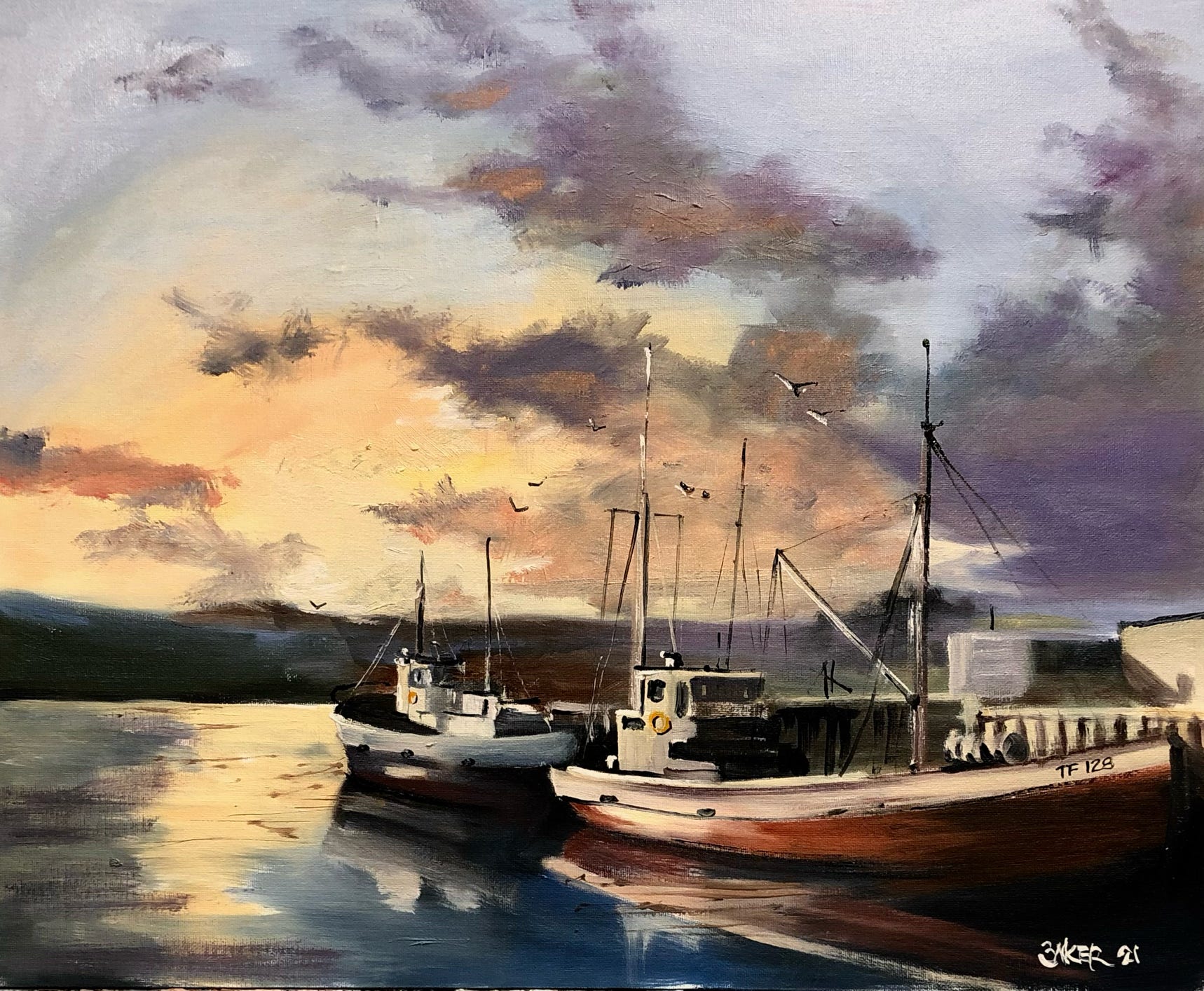 Fishing Boats at first light - 20 x 16 oil on canvas board - $320.00